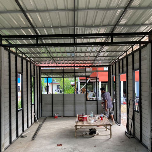 Jasa konstruksi baja ringan untuk rangka atap bangunan, rangka plafon, dan rangka dinding partisi berbagai kebutuhan hunian usaha.