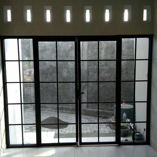Jasa pekerjaan aluminium untuk pembuatan kusen, pintu, jendela, dan partisi sesuai kebutuhan bangunan modern fungsional.